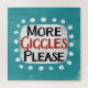 "Mais rabiscos por favor" é um design de texto divertido com uma forma de sotaque branca cercado por pontos brancos texturizados.