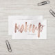 Tipografia personalizada do pincel em folha de ouro rosa num fundo branco ondulado com monograma em letra sans serif. O verso contém todas as informações em fontes elegantes sans serif em um fundo branco ondulado
