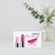 Design de cartão de visita de maquiagem com batom rosado brilhante e lábios femininas cor-de-rosa rubi sobre fundo branco. Esta na moda é perfeita para os esteticistas, cosmetólogos, cabelos e salões de beleza e outras profissões similares. Se precisar de ajuda com este design, sinta-se à vontade para me contactar.