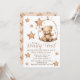 "Mal podemos esperar", Chá do Bebê-Garoto, com Urso de Água Bonito sentado em um berço cercado por estrelas! Personalize!