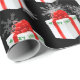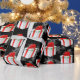 presente de Natal branco com arco vermelho e texto de Natal feliz em um fundo preto. Fundo branco de flocos de neve. A cor de fundo pode ser alterada.