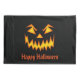 A mala é mostrada a preto com uma assustadora impressão de rosto de abóbora de Halloween. Escolha um conjunto de fronhas também. Personalize este item ou comprar como está.