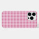 Mala de telefone celular com padrão de xadrez cor-de-rosa suave.