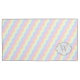 Linhas de ondas rolantes fazem um padrão simples e divertido num arco-íris de cores pastéis de rosa a lavanda criando um padrão bonito para primavera. Personalize a caixa inicial neste travesseiro para criar alguns linens fofos e personalizados para sua casa.