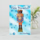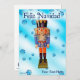 Um tradicional pirata alemão de madeira que retrata um oficial militar com uniforme azul e laranja. O quebra-cabeça é sobreposto a uma imagem de fundo azul com flocos de neve. O texto em espanhol com a menção "Feliz Navidad" (Feliz Natal) também aparece. Adicione seu próprio texto adicional.