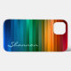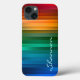 Rainbow multicolor stripe durão iPhone 6 com texto personalizado. Design de fita-arco-íris vibrante e marcante, apresentando uma matriz de vários tons de vermelho, verde, azul e amarelo. Personalize-o com seu nome ou qualquer outro texto que você queira.