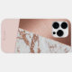 este caso incorpora muitas texturas metálicas simuladas em rosa dourado. de uma textura de metal escovado a rosa dourado, mármore brilhante branco e rosa de ouro, e cor-de-rosa azul brilhante rosa dourado empoeirado. o texto personalizado no fundo está em uma fina fonte serif minimalista