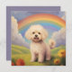 Um cartão de compaixão personalizado do memorial Maltipoo com uma bela pintura de um Maltipoo numa colina celestial com uma bela sobrecarga do arco-íris. Simbolizando o cão Maltipoo passou pela ponte do arco-íris para o céu castrado. Você pode personalizá-lo com o nome do seu próprio cachorro Maltipoo ou qualquer outro texto no verso do cartão. Faz um memorial especial ou um presente de simpatia para qualquer amante de cachorro Maltipoo se seu querido cachorro passou.