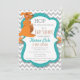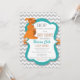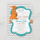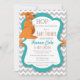 Tenha um bom chá de fraldas com este adorável convite! Possui mamães bonitas e canguru bebê com moldura lacrimogênea, banda de bolinhas laranja, e fundo cavalar cinza.