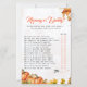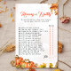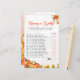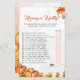 Sorriso e competição amigável no seu chá de fraldas com este maravilhoso cartão de jogo 'Mamãe ou Pai?'. Apresentando uma bela design de aquarela de gourdes e delicadas folhas de outono, acentuadas com sutis ouros, este cartão de jogo complementa perfeitamente a sua celebração sazonal. Os hóspedes vão adivinhar se a mãe ou o pai têm mais probabilidade de realizar várias tarefas relacionadas com o bebê, fazer-o como um quebra-gelo fantástico e uma atividade memorável. Incorpore facilmente todos os detalhes de eventos específicos ou perguntas personalizadas para tornar esse jogo exclusivo. Ideal para chás de fraldas de outono, encontros rústicos ou festas inspiradas na colheita, garantindo que todos tenham diversão e tempo de envolvimento.