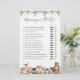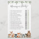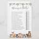 Os animais florestais com o tema mamãe de chá de fraldas ou cartão de caça de pai apresentam uma ilustração de animais de madeira de cor d'água e verde-d'água eucalipto garland e uma elegante letra de estilo manuscrito.