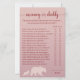 Adicione diversão e risos ao seu chá de fraldas florestal com esta Mamãe ou cartão de jogo de Pai! Os convidados irão adivinhar quem é mais provável que faça certas tarefas parentalidades - mamãe ou pai - fazer-o como uma atividade lúdica e interativa para todos. Apresentando uma doce mamã e um bebê urso sobre um fundo cor-de-rosa pincelado, este cartão de jogo rústico é perfeito para celebrar os futuros pais enquanto mantém os convidados entretidos.