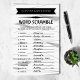 Estes chás de fraldas são perfeitos para qualquer um que tenha um chá de fraldas neste Halloween. Basta dar esses cartões de jogo aos seus convidados para jogar no chá, quem desembaralhar as palavras primeiro, ganha um prêmio de sua escolha! Respostas: 1) Fralda 2) Chá de fraldas 3) Esfregaço 4) Enfermeiro 5) Cobertura 6) Pacificador 7) Ponto único 8) Transbordo 9) Atividade Mat 10) Mistura 11) Bassinet 12) Frasco 13) Bovinos