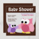 Chamas de Bebê de Coruja Bonita com uma coruja de mamãe rosa segurando a asa de sua coruja de bebê roxa.
