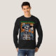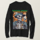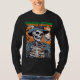 Apresentando nossa camiseta "Esqueletal Spooks and Pumpkin Delights". O texto verde escreve "Skeletal Spooks" no alto, enquanto o laranja "Delights" fica por baixo, capturando o fascínio do Halloween. Um esqueleto suavemente esquentado fazendo um chapéu superior comanda atenção, colocado contra um pano de fundo laranja com um sorriso flutuante e assustador. Esta camisa funde calafrios e charme, um dever para os entusiastas do Halloween que buscam estilo de destaque.