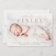 Um elegante design de anúncio de nascimento que apresenta um cheio sangrando uma foto horizontal ou orientada a paisagem com "introduzindo [name]" no topo, em blogs de caligrafia e em letras clássicas de serifa. O nome do cheio do seu bebê, estatísticas de natalidade, e a assinatura da sua família aparecem no fundo. Adicione três fotos quadradas adicionais no verso.
