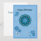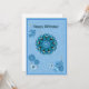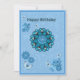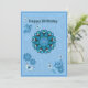 Feliz aniversário mandalas cumprimentando o cartão, com borboletas e flores para ela ou para ele. Motivos de fundo azul-teares e brancos