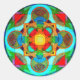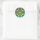 Uma design de mandala original muito colorida, desenhada à mão num adesivo. Um desenho feito com marcadores de forma pontilhística para criar uma vibrante e atraente obra de arte de intensa energia positiva.
