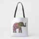 Carry Wisdom and Color Wherever You Go Make a bold statement with this stunning Boho Elephant Tote Bag. This design features a majestic elephant silhouette intricately filled with a kaleidoscope of mandala patterns, vibrant paisley swirls, and psychedelic floral motifs. The rich palette of pink, turquoise, golden yellow, and deep purple creates a high-contrast look that stands out on the natural canvas background.