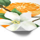 Laranjas de mandarina, folhas e flores. Você pode alterar a fonte e a cor da fonte. O convite tem um padrão laranja correspondente no verso.