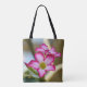 Esta bolsa de tote com uma flor de mandevilla impressionante com pétalas cor-de-rosa macia e bordas cor-de-rosa profundas parecerá incrível ao comprar.