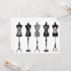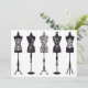 Manequins de moda, design para chá de panela, convites para desfiles, cartas, compras, boutiques