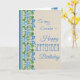Um Cartão de Aniversário de setembro bonito para um Primo, com um padrão nostálgico de Flores Gloriosas Azuis Brilhantes (flor do Mês de Aniversário de setembro) sobre um fundo de Pedra. Parte da coleção 'Glória da Manhã' de Posh & Painterly. (Este padrão irá ajustado todos os tamanhos de cartão de saudação.)