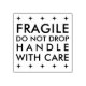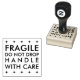 Carimbo de borracha personalizado com "frágil, não caia, trate com cuidado" em tipografia sans serif clássica com bordas estelares. Disponível em vários tamanhos, com almofadas de tinta adicionais disponíveis em várias cores.