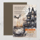 Eleve sua reunião de Halloween com este convite de festa assustadoramente elegante. Meticulosamente elaborado, este convite evoca o espírito misterioso da temporada, misturando um caldeirão enigmático, uma mansão assustadora e morcegos voando. Inclui um poema único para convidar seu convidado, destacando este convite dos demais. Personalize os detalhes da festa de acordo com o horário e o local do seu evento.
