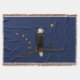 Uma águia careca varreu o céu de sua perca em um galho de árvore; sobreposto a uma bandeira do Alasca.