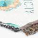 Gráfico tropical oceânico com "Aloha" em fontes modernas