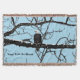 Uma renderização digital de uma águia careca empoleirada em um galho coberto de neve de uma árvore de algodão. Adicione seu próprio texto.