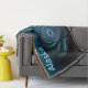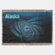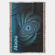 Uma imagem fractal azul parecida com um grupo giratório de baleias sob gelo polar; talvez beluga ou baleias-da-índia que frequentam os polos. A leitura de texto "Alaska" aparece em azul e branco brilhantes.