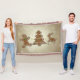 Ilustração elegante e deliciosa de Natal: Árvore de Natal de pão de gengibre decorado, homem de gengibre e veado de gengibre com estrelas de ouro sobre fundo de chavão castanho.