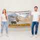 Uma pintura digital de uma rena de touro na tundra do Alasca; montanhas à distância. Adicione seu próprio texto.