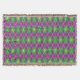 Um padrão harlequin de verde e roxo se transforma em um argilo lúdico com uma camada de contornos de diamante de ouro e flur de lis, criando um padrão divertido e colorido perfeito para qualquer nova orleans influenciou a celebração do Mardi Gras.
