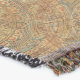 Uma mandala tibetana antiga é a base para este teste padrão bonito nos tons neutros da terra do tan, do ouro, do marrom e do creme com uma sugestão pequena do azul que fazem uma cobertura considerável, sofisticada e interessante do lance.