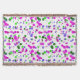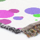 Bolinhas Rosa flutuando em um tema de confete lançado com Rosas, Roxos, Azuis e Verdes complementares brilhantes, todos colocados como se estivessem caindo da celebração.