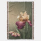 Elegante manta de lançamento de acento de quarto floral, com gráficos de uma bela flor de íris cor de borgonha e creme e borboleta, contra um fundo verde suave. Personalize esta peça de destaque com qualquer texto que você quiser ou deixe como está para uma ideia de presente adorável.
