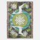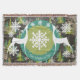 Belo cobertor de natal apresenta um céu noturno com estrelas pequenas cintilantes, árvores verdes, flocos de neve brancos, um anel de palha sólida com alguns flocos de neve brancos e um centro de bolinhas verdes com pequenas brancas. Duas silhuetas brancas adoram este bonito jogo de férias e há uma área que você pode facilmente personalizar com seu nome familiar.