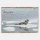 Uma pintura digital de uma Foca de Fita marrom e branca assentando em um gelo flutuando em uma cinza e um dia de sonho. O texto personalizável lendo "Alaska" também é exibido. O selo da frança (Histriophoca fasciata) é uma espécie média que se pinta da verdadeira família das focas (Phocidae). Estão entre os mais notáveis e facilmente reconhecíveis. Podem ser identificados pelas bandas distintivas de cor clara ou "fitas" que rodeiam o pescoço, cada frondosa e quadris. O contraste é particularmente forte com os machos, tendo uma pelagem castanha escura a preta com fitas brancas, as fêmeas variam de cinza de prata a castanho escuro com fitas paler. As crias recém-nascidas de foca de fita têm pelo branco natal. Depois de moldar o pelo natal, sua cor muda para a cinza azul nas costas e a prata embaixo; depois de alguns anos, algumas porções ficam mais escuras e outras mais brilhantes, e somente aos quatro anos de idade o típico design mostra. As focas de fita moldam a casaco de cabelo anualmente, começando em maio e terminando em julho, com os indivíduos mais jovens molhando mais cedo. O selo da fita possui um saco de ar inflável grande que está conectado à traqueia e se estende do lado direito sobre as costelas. Pode funcionar como um dispositivo de flutuação, para armazenamento de ar durante o mergulho ou para "fonação". É maior nos homens do que nas mulheres. O selo de fita pode crescer até cerca de 5,2 pés de comprimento e pesar até 209 lb em ambos os sexos. As focas de fita alternam as suas frondes e balançam os seus quartos traseiros para atravessar o gelo, a preferencialmente, do que utilizando o movimento semelhante à lagarta normalmente utilizado pela maioria das focas. Os selos de fita são também adaptados fisiológica e anatomicamente para fazer mergulhos mais profundos (até cerca de 1950 pés (600 m)) e natações mais rápidos que outros selos. Têm um saco de ar que as focas de fita são uma espécie sazonalmente ligada ao gelo encontrada nas regiões árcticas e subárticas do oceano Pacífico Norte, nomeadamente no Mar de Bering e no Mar de Okhotsk, e em partes adjacentes do oceano Ártico, incluindo o Mar de Chukchi, no Mar Siberiano Oriental e no Mar de Beaufort Ocidental. Estas focas são relativamente solitárias, passando a maior parte do seu tempo no oceano aberto e formando agregados soltos no gelo do grupo durante a primavera para dar à luz, crias de enfermeira, e moldados. Eles são muito raramente vistos em gelo ou terra de curta distância. Essa espécie parece preferir geleiras "limpas", moderadamente grossas, encontradas na zona interna da frente do gelo. Do final de março ao início de maio, as focas de fita no Mar de Bering variam entre as Ilhas Pribilof e o Golfo de Anadyr, aproximadamente ao longo do intervalo da plataforma continental, sendo mais abundantes na parte noroeste do gelo. À medida que o gelo recua de maio a médio de julho, as focas se movem mais para o norte, onde se arrastam na extremidade do gelo recuado e restam gelo, ocasionalmente em grupos densos. Após o derretimento do gelo, a maioria das focas de fita provavelmente migrará com o gelo marinho recuado através do Hetero de Bering para o Mar Chukchi ou permanecerá pelágica no Mar de Bering durante o resto do ano. Até à data, só foram reconhecidos dois casos em que se encontraram focas de fita a sul de Seattle, Washington e ainda mais ao sul na Baía de Morro, Califórnia. Não havia nada que sugerisse que a doença era a causa do aparecimento das focas em qualquer lugar, pois ambas pareciam saudáveis. As mães de foca de fita dão à luz os seus filhotes longe do mar no gelo durante os meses de abril a princípios de maio. As crias duplicam o seu peso durante o aleitamento e são desmamadas após três a quatro semanas. O acasalamento deve ocorrer logo após o desmame, embora pouco se saiba do sistema de criação. Sabe-se que as focas de fita comem uma variedade de peixes, cefalópodes e crustáceos; no entanto, a informação sobre os seus hábitos alimentares é limitada e restringida principalmente à primavera quando as focas de fita se alimentam normalmente menos, como evidenciado pela diminuição do peso e da espessura da borracha. Embora haja pouca evidência direta de predação, potenciais predadores de focas de fita incluem ursos polares, baleias assassinas, tubarões e morsas. Os selos de fita são relativamente instáveis enquanto são arrastados e podem ser aproximados de perto por barco. Este comportamento sugere que as focas de fita provavelmente não experimentam muita predação por ursos polares, mas podem também torná-las especialmente susceptíveis à caça pelo homem. Os nativos da Sibéria e do Alasca caçaram o selo de fita durante muitas gerações para fins de subsistência, e estima-se que a atual captura anual dos nativos do Alasca seja inferior a 200 focas por ano. As colheitas comerciais de focas de fita foram realizadas por seladores soviéticos nos anos 1960-1980, período em que se pensa que a população do Mar de Bering tenha diminuído de 80.000 ou 90.000 animais para 60.000. Levantamentos no início e médio dos anos 1970 fizeram a estimativa populacional mundial de focas de fita entre 200 mil e 240 mil, com estimativas entre 60 mil e 100 mil no Mar de Bering. Não está atualmente disponível uma estimativa mais recente e fiável da abundância. Os predadores do selo de fita incluem a orca, o tubarão da Gronelândia e os ursos polares. Na década de 1960, a população de focas de fita no Mar de Bering foi reduzida de cerca de 120 mil para 70 mil. O tamanho da população aumentou para cerca de 130 mil em 1987, depois que as cotas foram fixadas para limitar a colheita a cerca de um quarto do número de focas caçadas anteriormente. Na última avaliação das unidades populacionais (2007), o Serviço Nacional de Pesca Marinha estimou uma população global de 240.000 focas de fita, 90.000-100.000 das qua