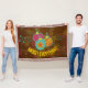 Feliz bonito e colorida Tudo o que se joga no feriado apresenta um fundo castanho vintage com vários padrões diferentes de floco de neve de rosa, azul-aqua, laranja e amarelo, três grandes ornamentos de bolas de árvores de feriado, e texto amarelo que lê Feliz Tudo! Esta bela jogada de Natal faz um presente de excelente ou ganha um para você se divertir por anos!