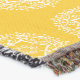 Esta mandala branca senta-se sobre um fundo amarelo de mel. As cores são quentes e pacíficas. Parte da Coleção Jarn Mandala.