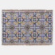 Design de padrão-azulejo português com decoração floral azul, branca e amarela