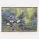 Um par de pato selvagem ducks a posição em uma rocha em uma lagoa no outono