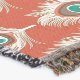 Jogue cobertor em uma impressão de têxtil de penas de pavão, executada no Adobe Illustrator e em uma Photoshop - penas brancas cremosas, com um olho em tons de laranja coral, castanho de chocolate e turquesa, sobre fundo laranja de mandarina