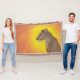 Esta é uma pintura digital de uma leoa com um belo pôr do sol africano atrás dela.