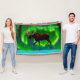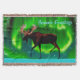 Uma imagem de um alce silenciada contra as luzes do Norte, um pouco estilizada. "Saudações da Estação" aparece em azul e branco brilhantes.