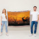 Uma bela silhueta de veados contra o fundo do pôr do sol neste maravilhoso cobertor.