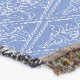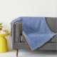 Uma cobertura chique do lance, com um teste padrão de motivos azuis da flor da pervinca dentro de um hexágono decorativo em um fundo azul profundo. Parte da "da coleção fino e Painterly do remendo pervinca".